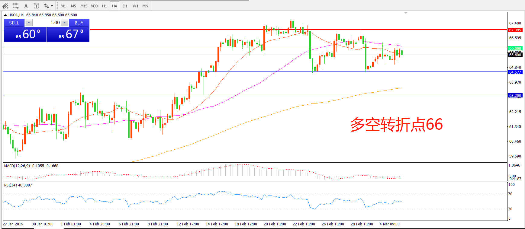 多空转折点:66.00