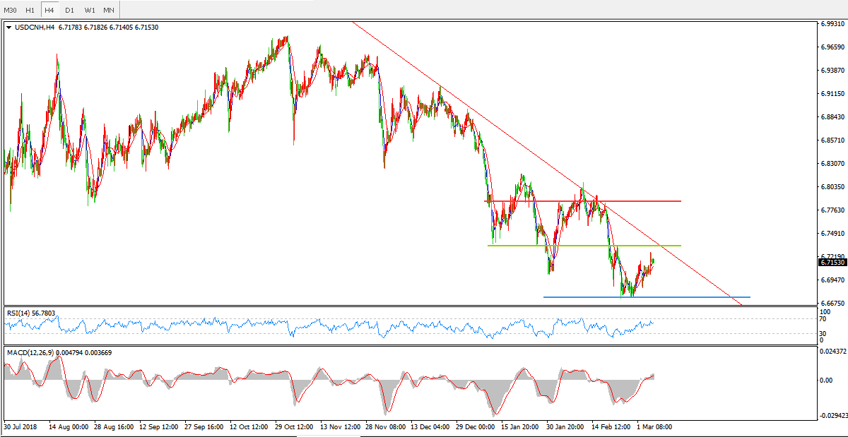 美元兑人民币USDCNH  4小时图: