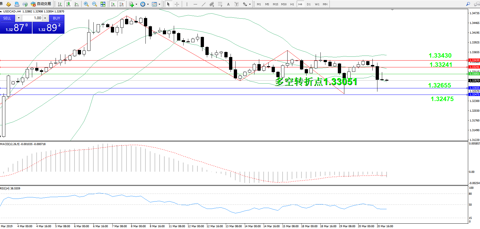 交易策略:1.33051下方看跌,目标1.32655、1.32475