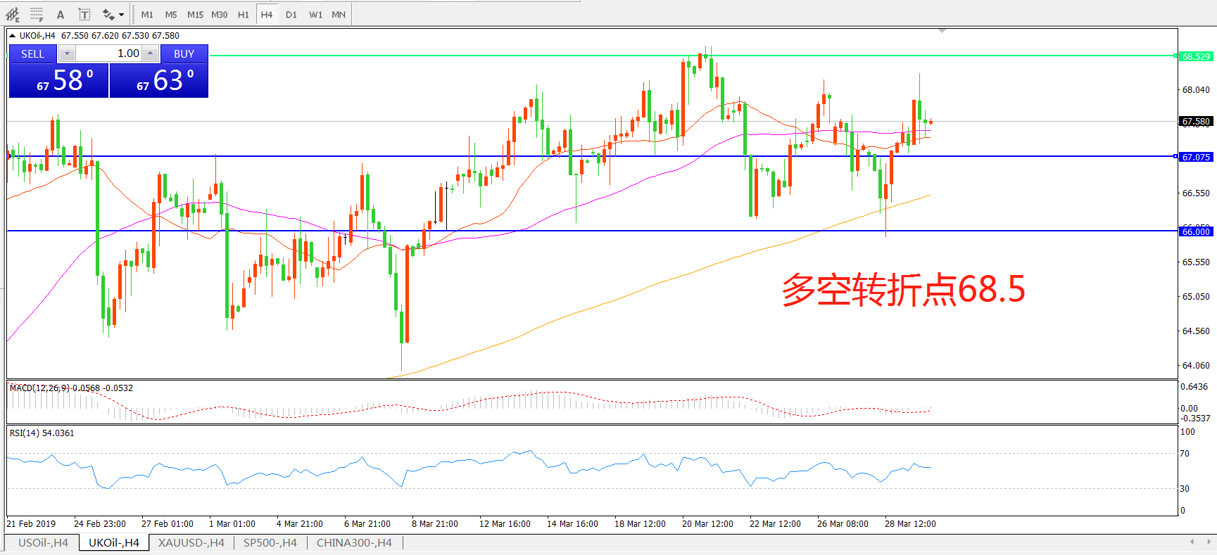 多空转折点:68.50