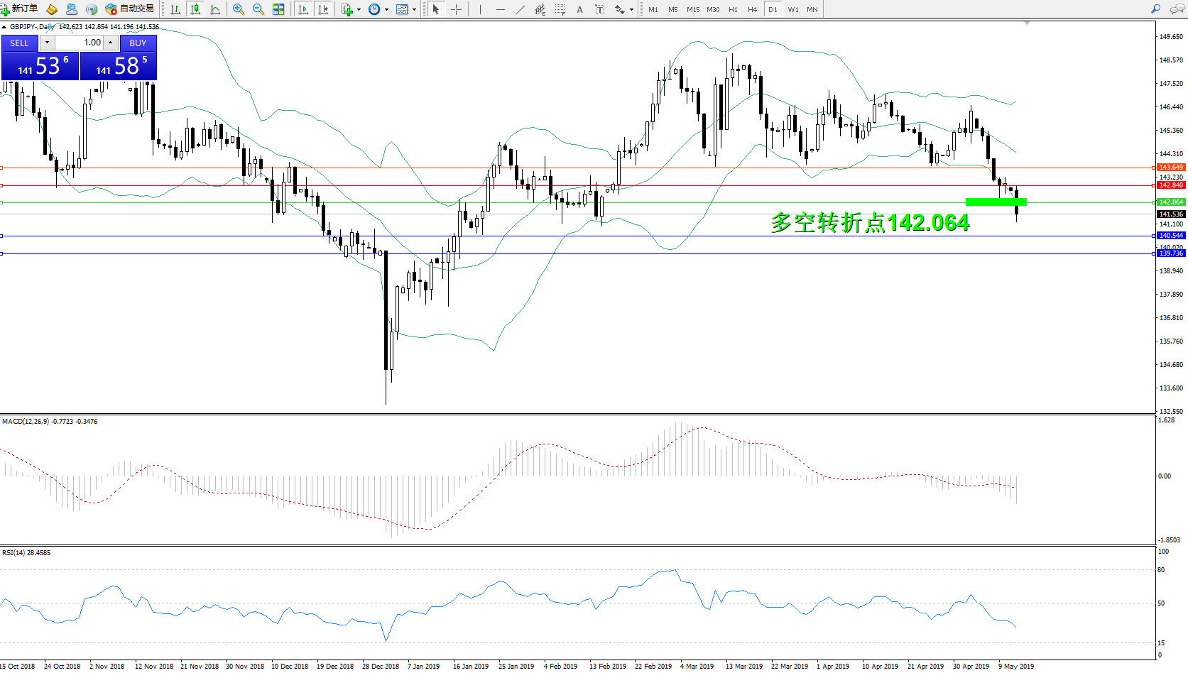交易策略:142.064下方看跌,目标140.544139.736