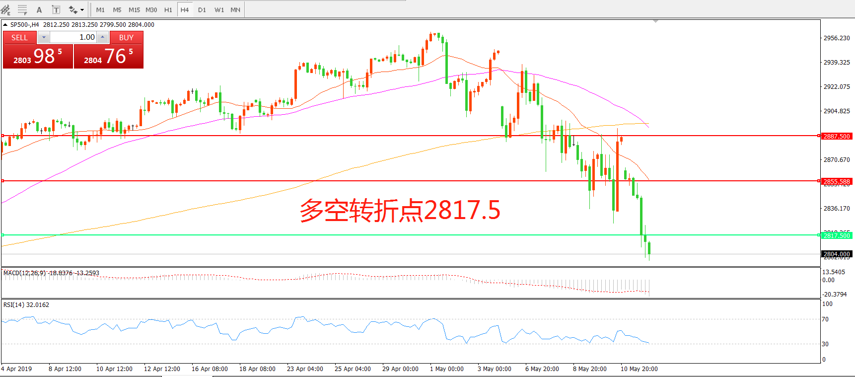 交易策略:在2817.5.之下看跌,目标2787.50 2746.00