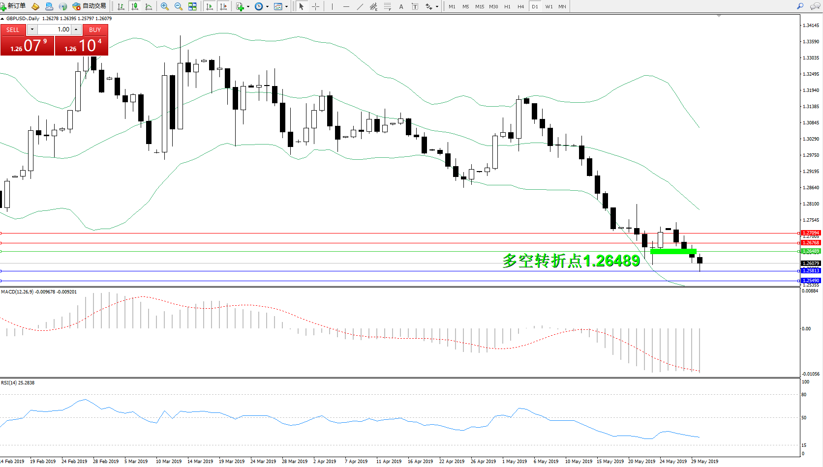 交易策略:1.26489下方看跌,目标1.25813、1.25490