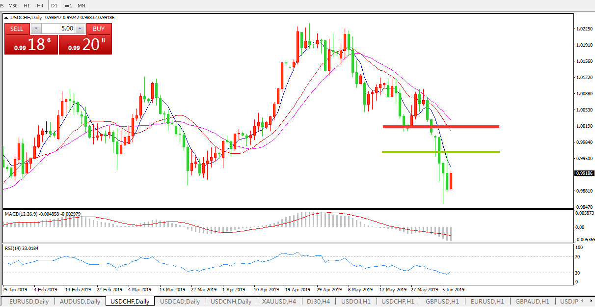 交易策略:0.9960下方看跌,目标0.98900.9850