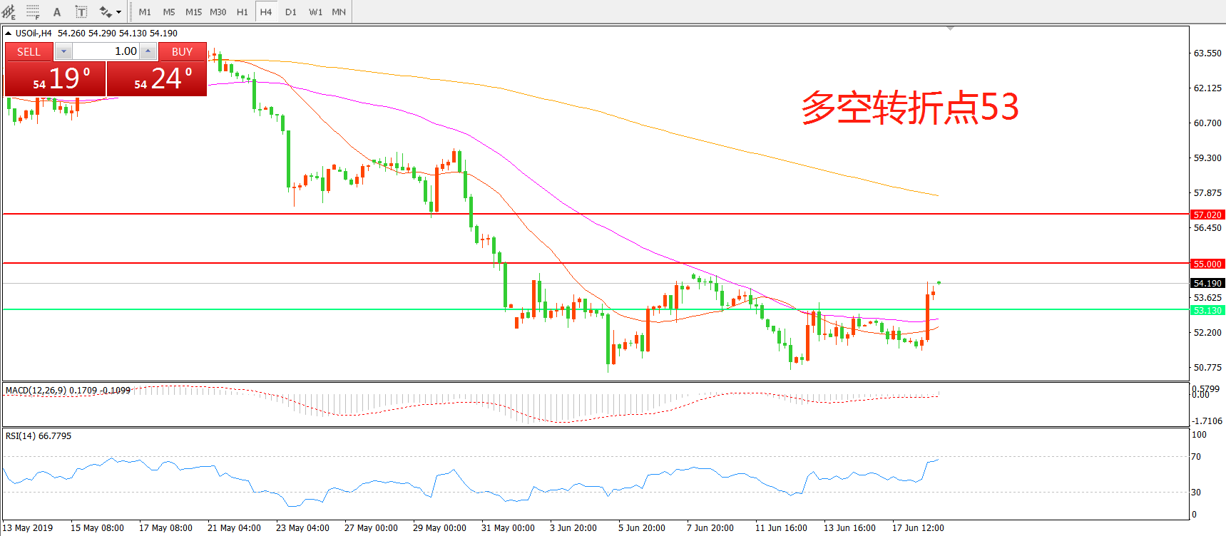 交易策略:在53.00之上看涨,目标55.00    57.00
