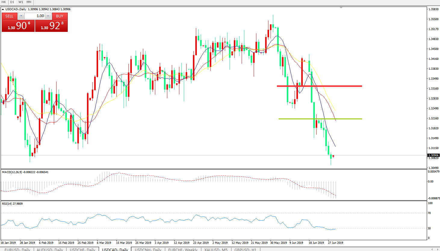美元兑加元USDCAD 日线图: