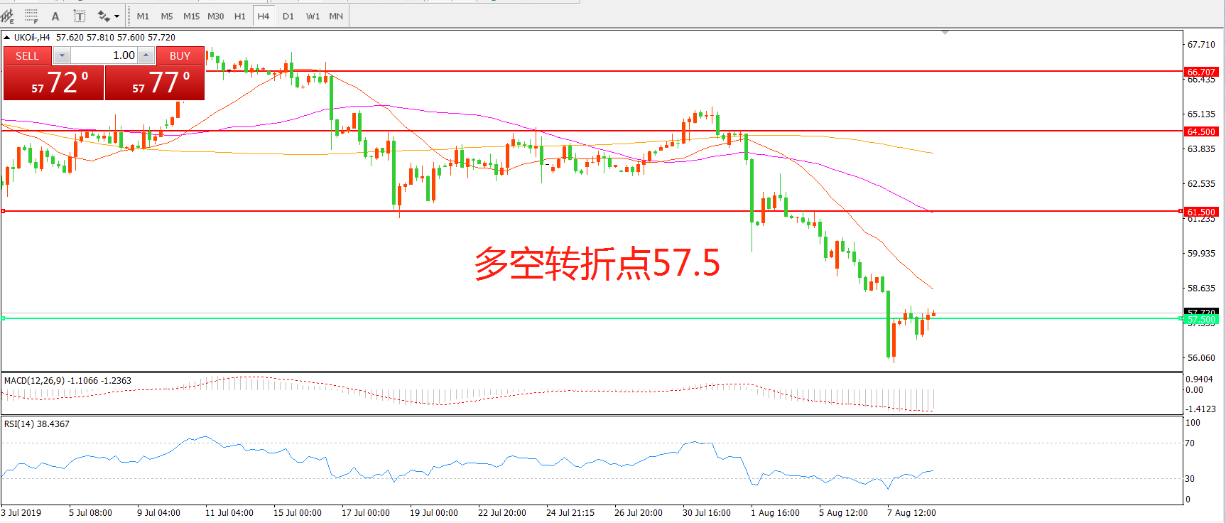 交易策略:在57.50之下看跌,目标53.00   50.00