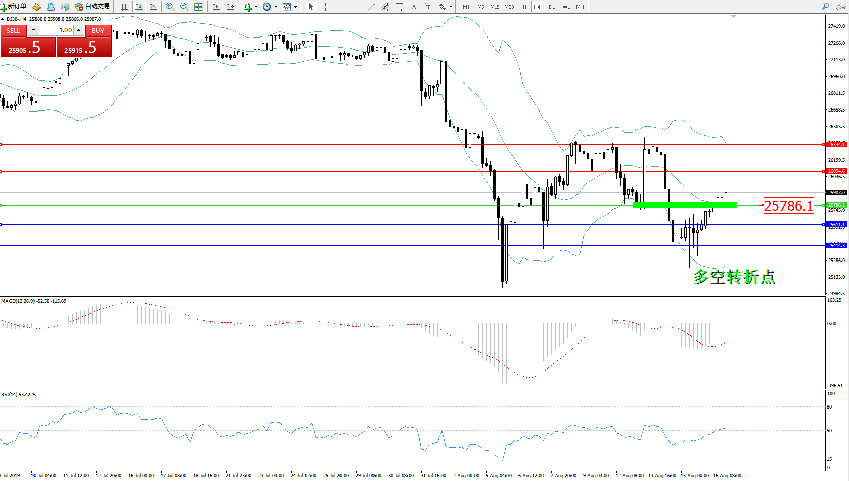 交易策略:25786上方看涨,目标26094、26334
