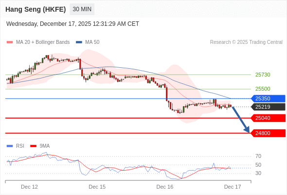 在 25350 之下,看跌,目标价位为 25040 ,然后为 24800 。