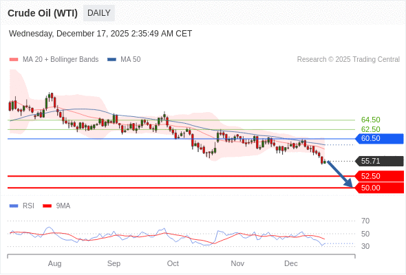 在 60.50 之下,看跌,目标价位为 52.50 ,然后为 50.00 。