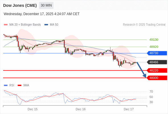 在 48730 之下,看跌,目标价位为 48220 ,然后为 48000 。