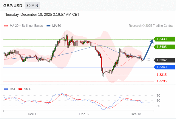 在 1.3340 之上,看涨,目标价位为 1.3405 ,然后为 1.3430 。