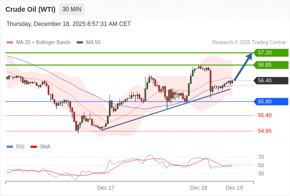 在 55.80 之上,看涨,目标价位为 56.85 ,然后为 57.20 。