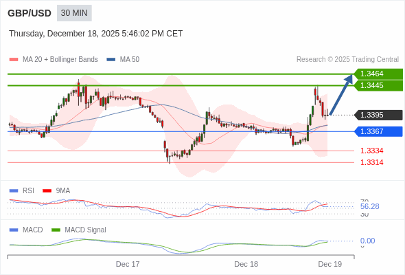 交易策略: 看涨,当 1.3367 为支撑位。