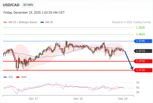 在 1.3795 之下,看跌,目标价位为 1.3750 ,然后为 1.3730 。
