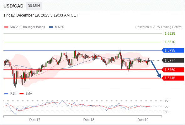 在 1.3795 之下,看跌,目标价位为 1.3760 ,然后为 1.3745 。
