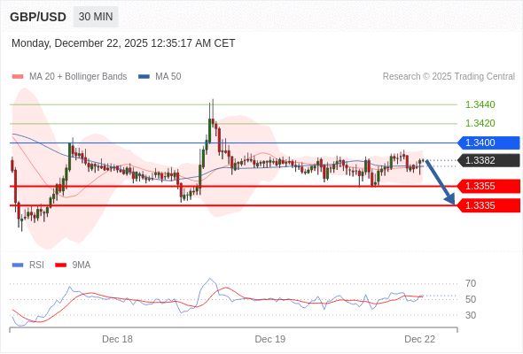 交易策略: 在 1.3400 之下,看跌,目标价位为 1.3355 ,然后为 1.3335 。