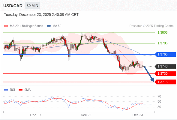 在 1.3765 之下,看跌,目标价位为 1.3730 ,然后为 1.3715 。