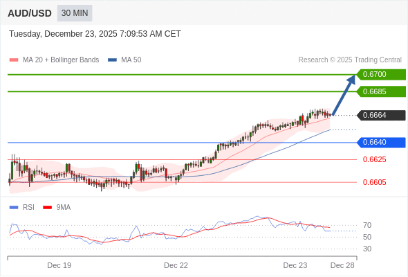 在 0.6640 之上,看涨,目标价位为 0.6685 ,然后为 0.6700 。