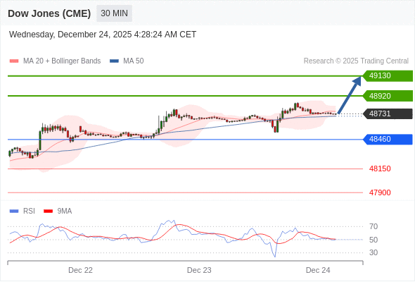 在 48460 之上,看涨,目标价位为 48920 ,然后为 49130 。