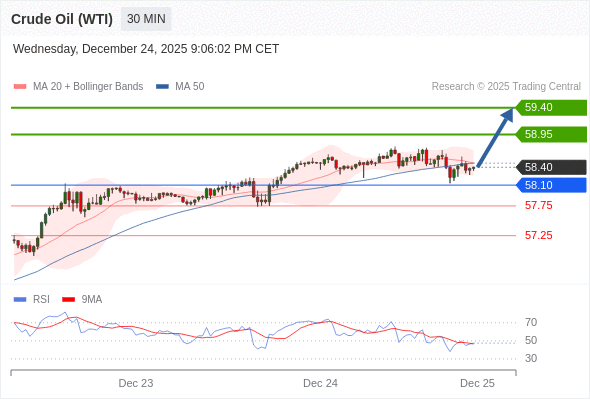 在 58.10 之上,看涨,目标价位为 58.95 ,然后为 59.40 。