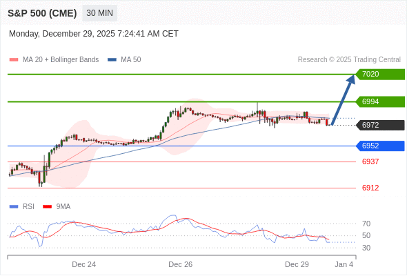 在 6952 之上,看涨,目标价位为 6994 ,然后为 7020 。