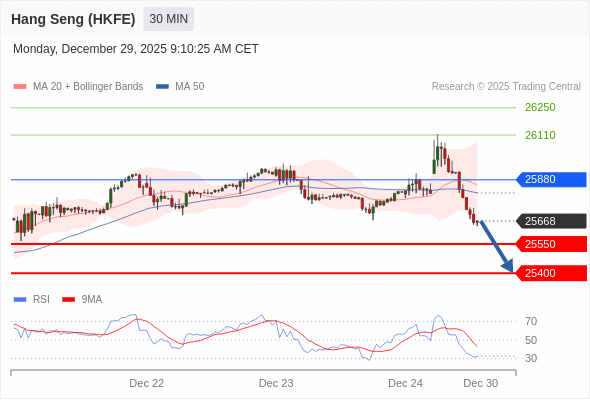 在 25880 之下,看跌,目标价位为 25550 ,然后为 25400 。