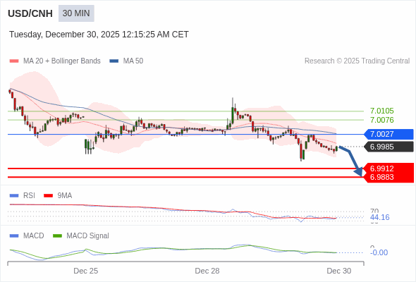 交易策略: 看跌,在 7.0027 之下。