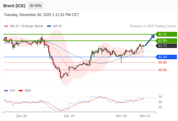 在 61.20 之上,看涨,目标价位为 61.95 ,然后为 62.25 。