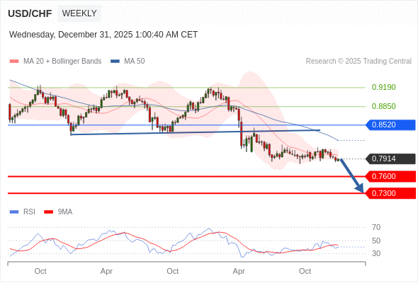 交易策略: 在 0.8520 之下,看跌,目标价位为 0.7600 ,然后为 0.7300 。