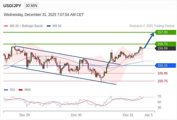在 156.15 之上,看涨,目标价位为 156.70 ,然后为 157.00 。