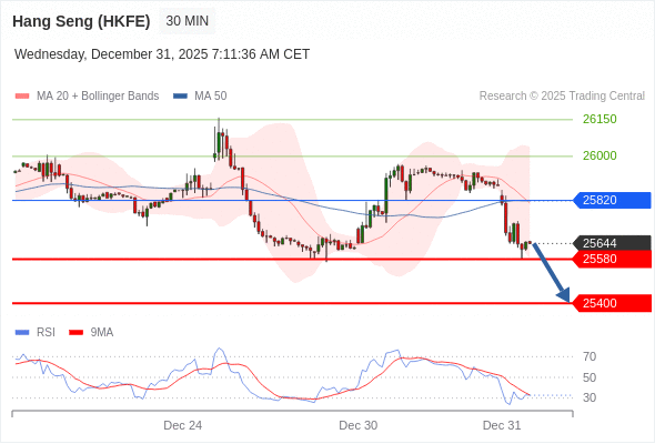 在 25820 之下,看跌,目标价位为 25580 ,然后为 25400 。