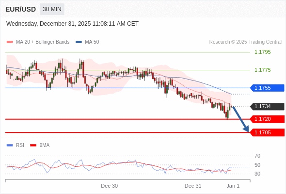 在 1.1755 之下,看跌,目标价位为 1.1720 ,然后为 1.1705 。