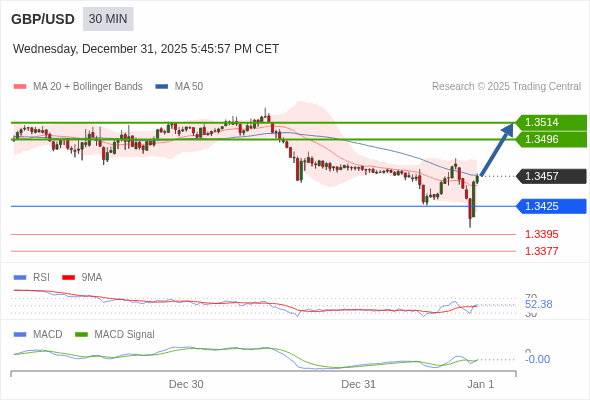 替代方案: 在1.3425以下,期待1.3395和1.3377。