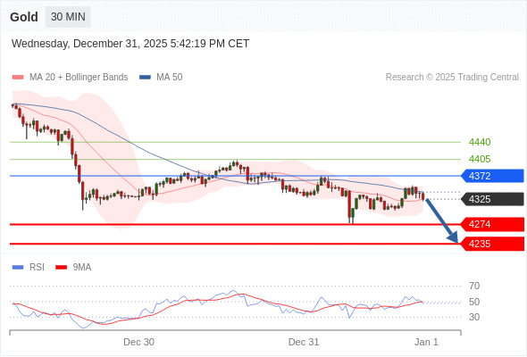 在 4372 之下,看跌,目标价位为 4274 ,然后为 4235 。