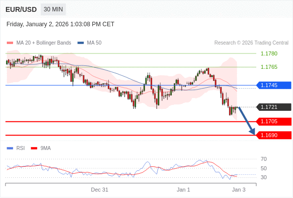 交易策略: 在 1.1745 之下,看跌,目标价位为 1.1705 ,然后为 1.1690 。