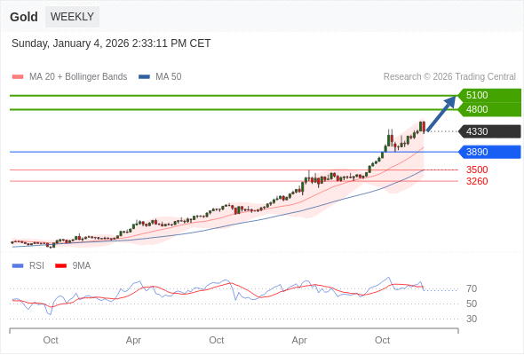 在 3890 之上,看涨,目标价位为 4500 ,然后为 4800 。