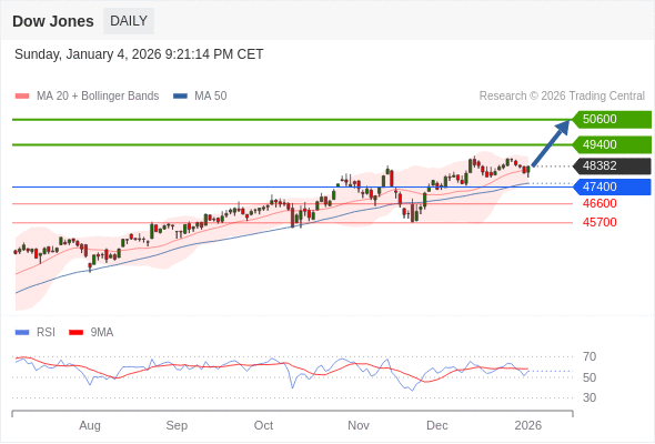 交易策略: 在 47400 之上,看涨,目标价位为 49400 ,然后为 50600 。