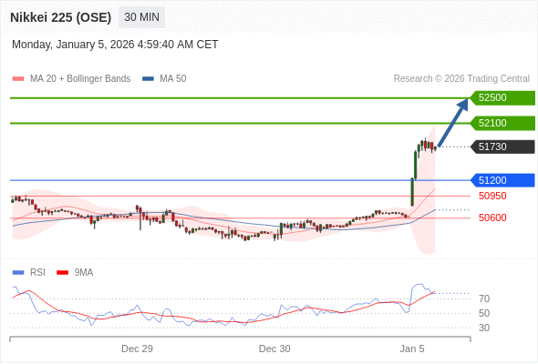 在 51200 之上,看涨,目标价位为 52100 ,然后为 52500 。