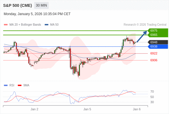 在 6938 之上,看涨,目标价位为 6965 ,然后为 6975 。