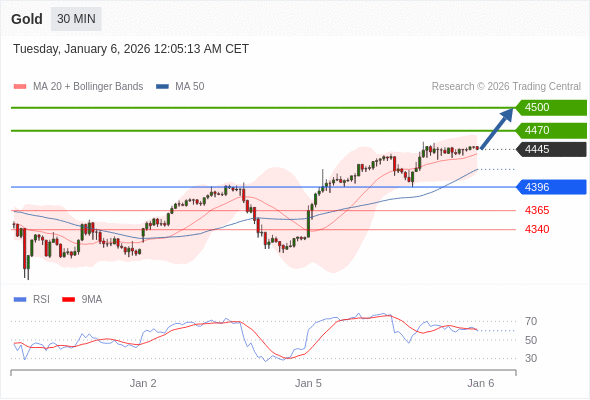 在 4396 之上,看涨,目标价位为 4470 ,然后为 4500 。