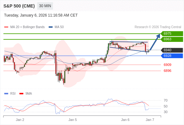 在 6928 之上,看涨,目标价位为 6963 ,然后为 6975 。