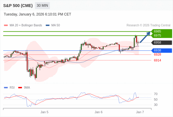 在 6938 之上,看涨,目标价位为 6975 ,然后为 6985 。