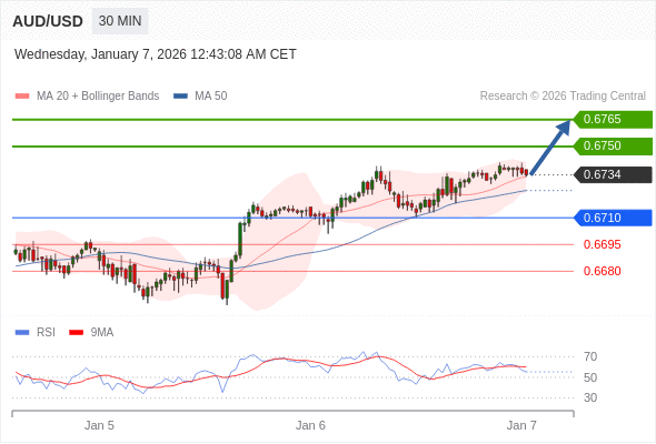 在 0.6710 之上,看涨,目标价位为 0.6750 ,然后为 0.6765 。