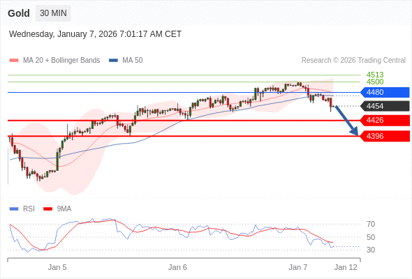 在 4480 之下,看跌,目标价位为 4426 ,然后为 4396 。