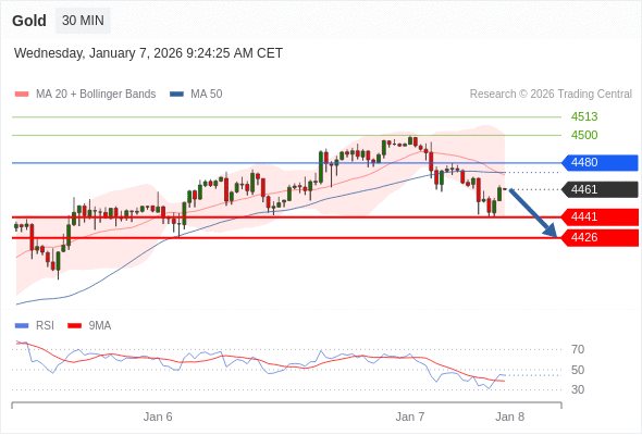 在 4480 之下,看跌,目标价位为 4441 ,然后为 4426 。