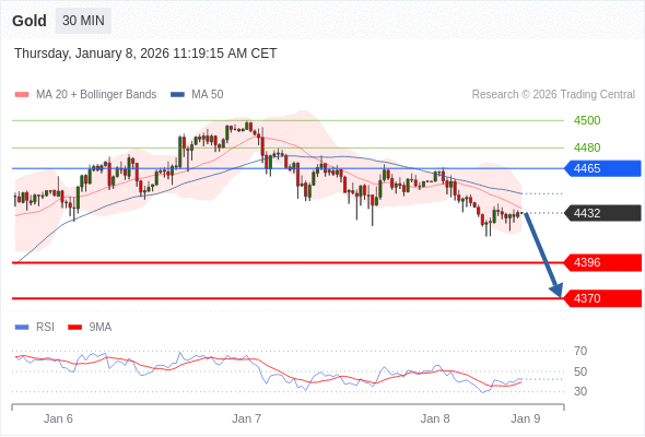 在 4465 之下,看跌,目标价位为 4396 ,然后为 4370 。