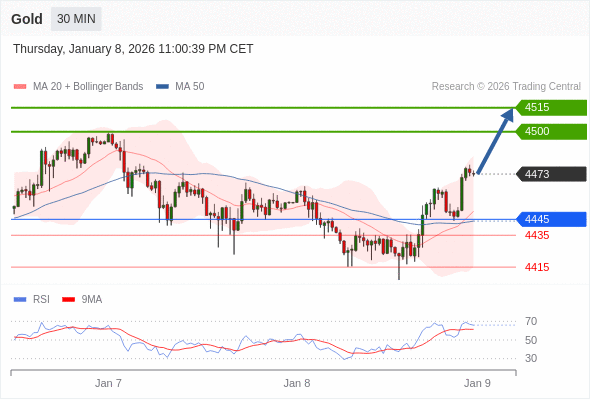 在 4445 之上,看涨,目标价位为 4500 ,然后为 4515 。