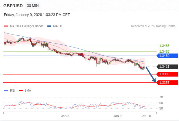 在 1.3450 之下,看跌,目标价位为 1.3385 ,然后为 1.3355 。