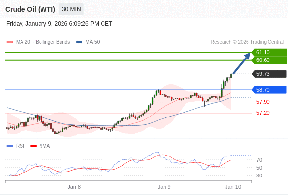 在 58.70 之上,看涨,目标价位为 60.60 ,然后为 61.10 。